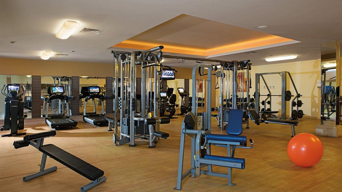 fitness center with weights, ellipticals, treadmills and workout equipment